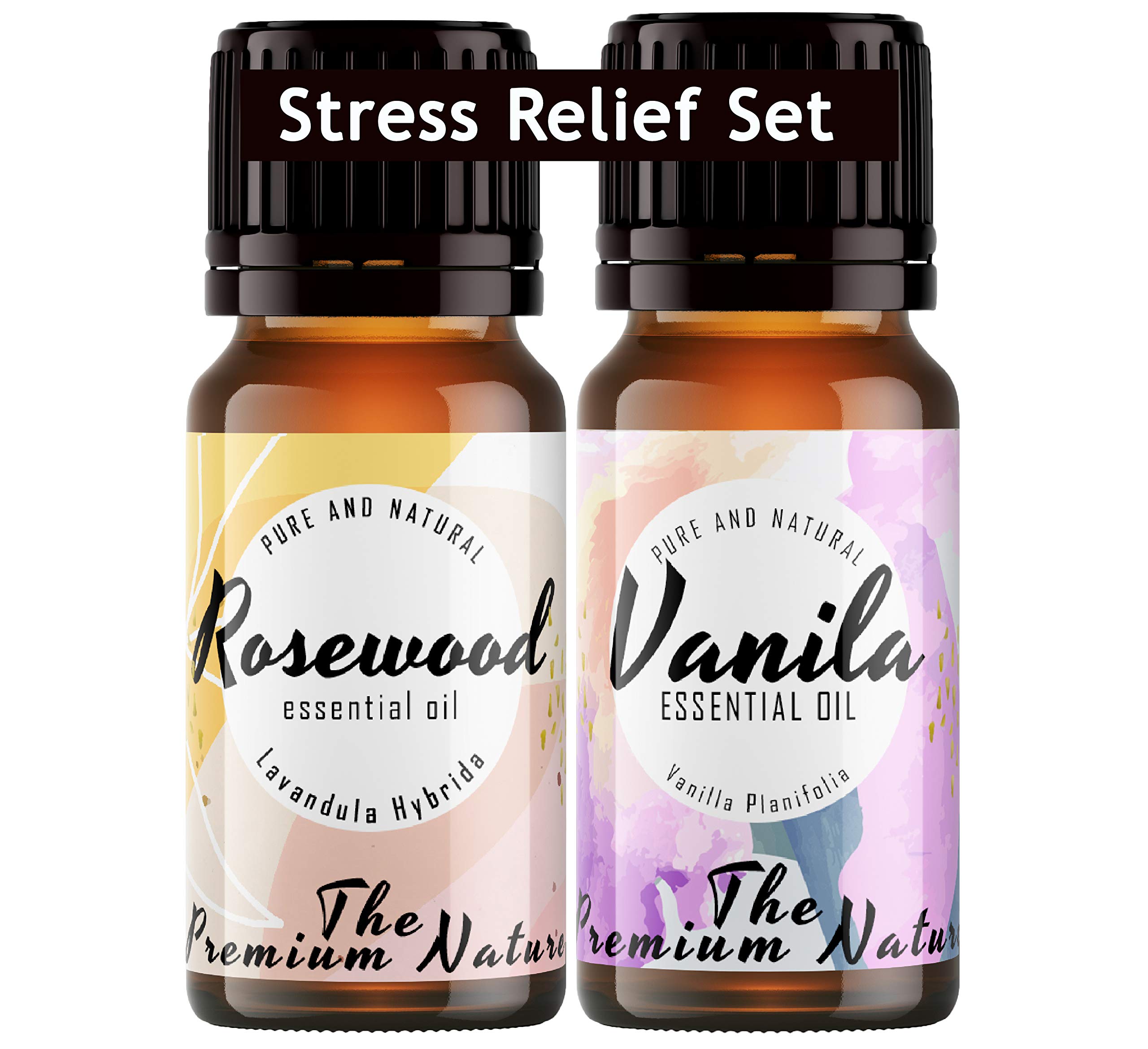 The Premium Nature Rosewood Oil & Vanilla Oil -Stress Relief Set for Headache Relief & Calmer Moments - 100% Pure Therapeutic Grade Essential Oils Set - 2x10ml