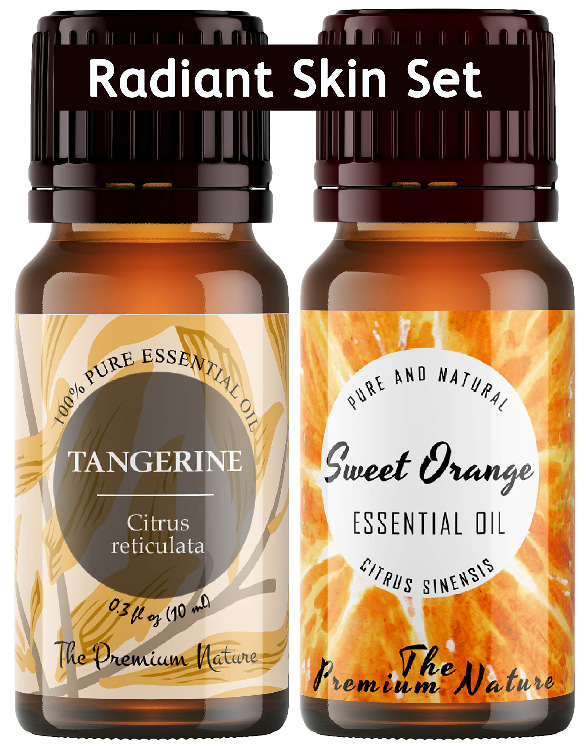 The Premium Nature Tangerine Oil & Sweet Orange Oil - Radiant Skin Set for Moisturized & Brightened Skin - 100% Pure Therapeutic Grade Essential Oils Set - 2x10ml