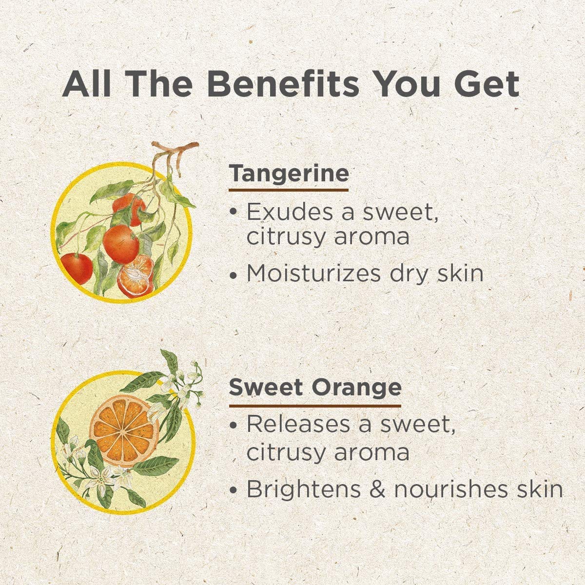 • Natural Ingredients - Our tangerine essential oil and sweet orange oil from Brazil are produced by cold-press to the purest form of essential oils tangerine and essential oils sweet orange.