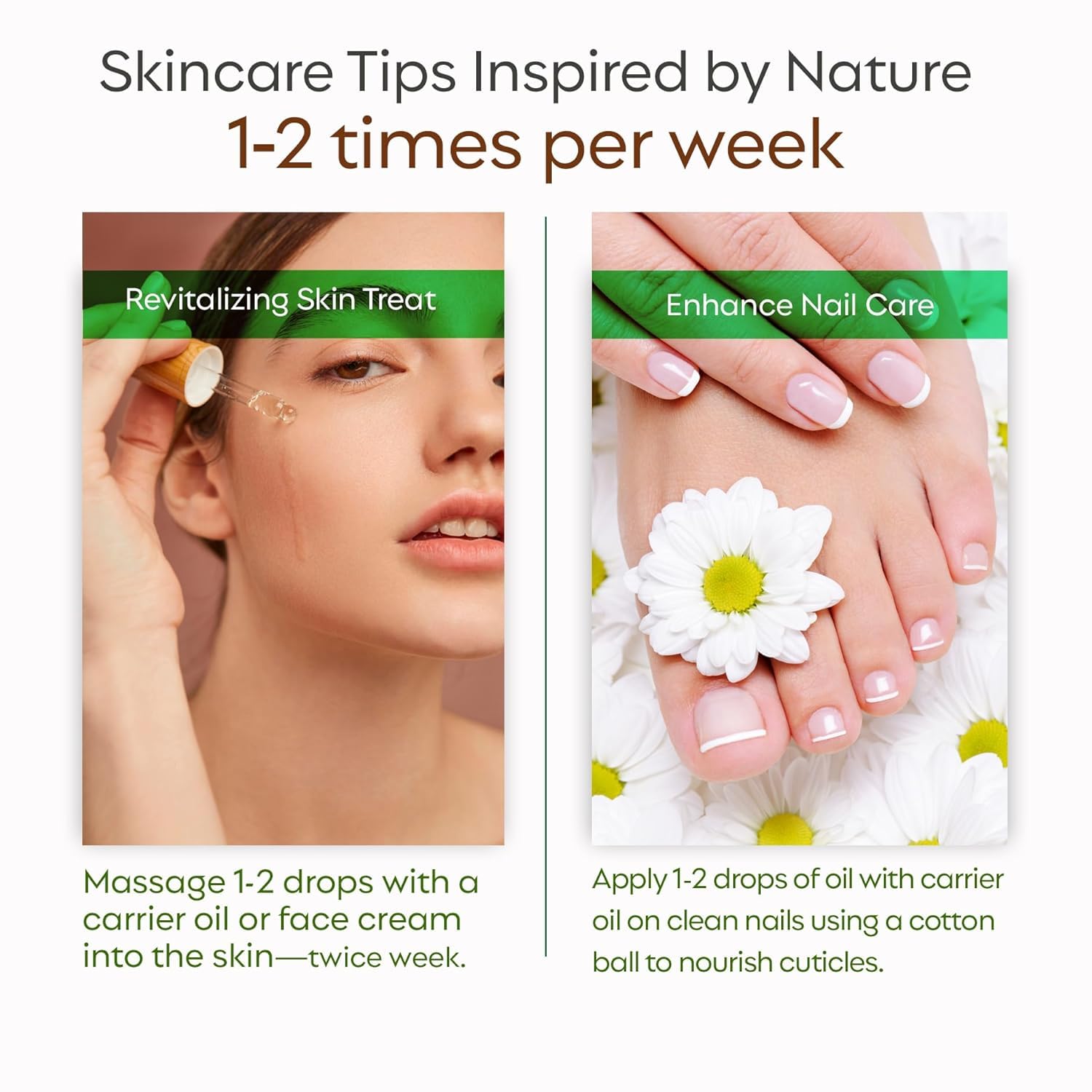 ENHANCE YOUR NAIL CARE ROUTINE. Improve the look and health of your nails with Manuka oil. Apply 1-2 drops mixed with a carrier oil to clean nails and cuticles using a cotton ball for nourishing care.
