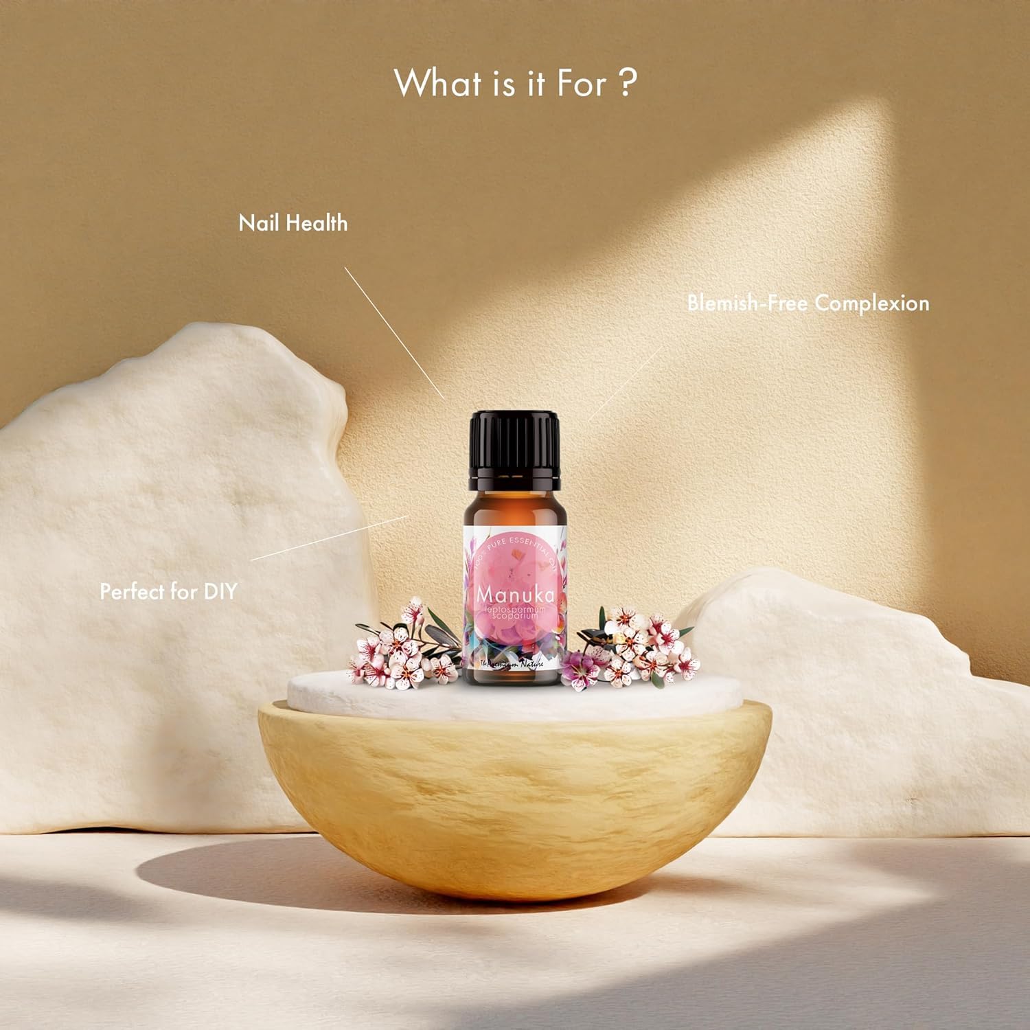 SKIN REVITALIZING ESSENTIAL. Experience the soothing and comforting benefits of Manuka oil for your skin. Simply mix 1-2 drops of Manuka essential oil with a carrier oil and apply to a cleansed face and skin for a rejuvenating touch.