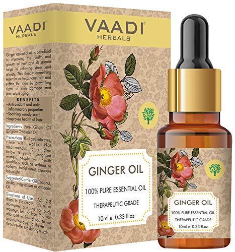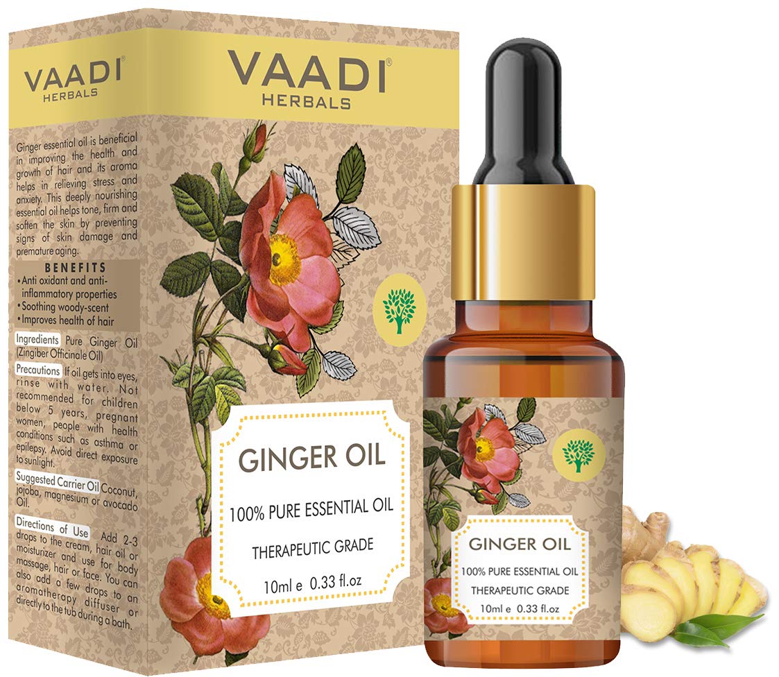 VAADI HERBALS has invested in research and innovations to produce a range of time-tested herb based essential oil range to enhance beauty and soothe & calm mind body and senses just the way nature intended us to be. Our commitment to quality extends throughout every phase of product development manufacturing and packaging. Herbs are checked for their essential qualities and tested at our laboratories where each ingredient is individually tested before it can be used to make a final product.About our essential oil range extracted through careful steam distillation and cold pressing only the purest essential oils are used in our range of oils.Ginger oil has warming and soothing properties that make it useful in everyday life. With a spicy fresh aroma It works well in a variety of diffuser blends and can enhance concentration and it can soothe and reduce feelings of stress anxiety and fatigue. The health benefits of ginger oil are the same as that of the herb from which it originates with the oil even being considered to be more beneficial due to its constituent that is mostly reputable for its antioxidant and anti-inflammatory properties.