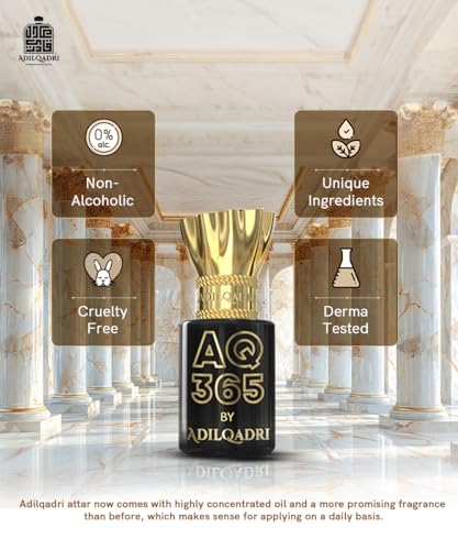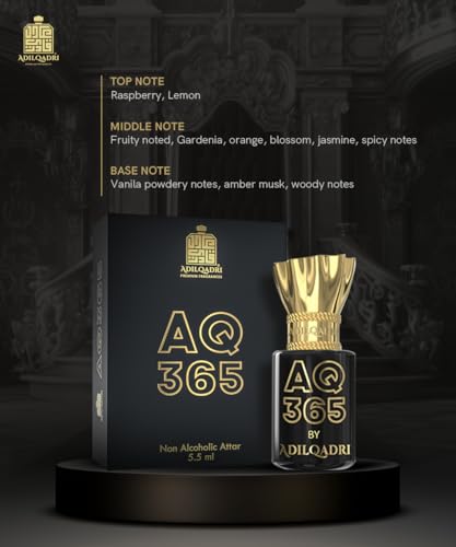 HomeHealth & PersonalAroma ProductsAttar/PerfumesAdilqadri AQ 365 Attar for Men & Women | Non Alcoholic Roll On Parfum | French & Fruity Blend with Citrus, Jasmine & Amber | Long Lasting, Fresh air Fragrance | Ideal Gift for Him & Her | 5.5ML