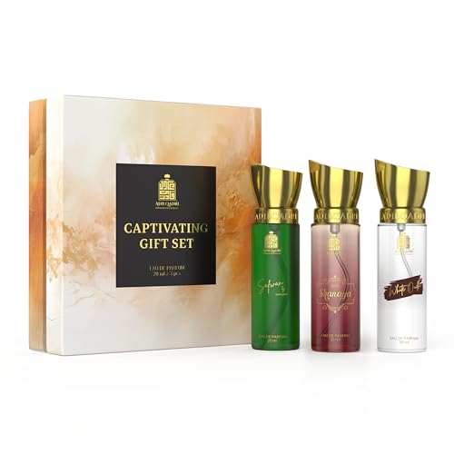 HomeHealth & PersonalAroma ProductsAttar/PerfumesAdilqadri Captivating Trio Luxury Perfume Gift Set for Men & Women (3 x 20ml) | With Shanaya, White Oud, Safwan Perfume, Unisex Strong Woody, Fruity, Amber Long Lasting EDP Fragrance Set
