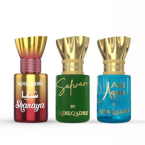 Adilqadri Shanaya Safwan & AQ Aqua Attar Combo Pack | Arabic & French Blend, Fruity & Fresh Aquatic Fragrance | Non-Alcoholic Roll-On Attar for Men & Women | Gift for Him & Her | 3 x 5.5 ML