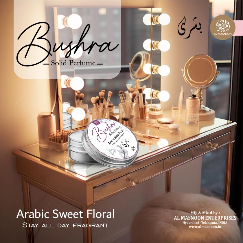 Al Masnoon Bushra Solid Perfume is a luxurious 10g fragrance that combines the sweetness of Arabic floral scents with a rich long-lasting aroma. This solid perfume is specially crafted to provide a delightful fragrance that lingers on your skin making it perfect for use after a bath or as a refreshing scent for underarms.Perfect For: Those who love the rich sweet floral scents of Arabic perfumes and seek a reliable long-lasting fragrance that can be used after a bath or for underarm freshness. Ideal for daily use and easy to carry for fragrance refreshment on the go.