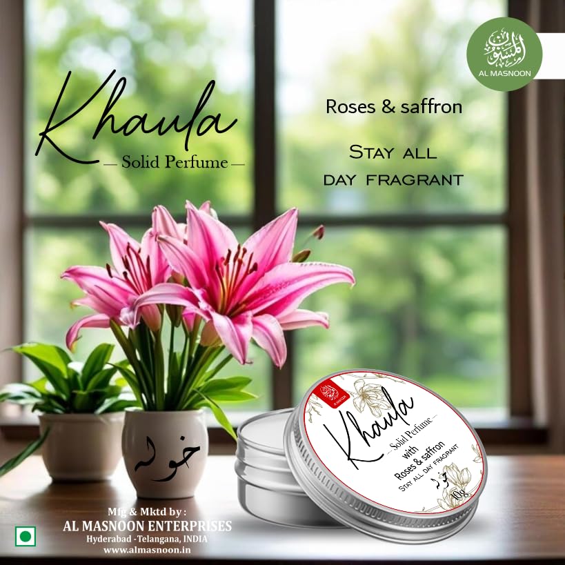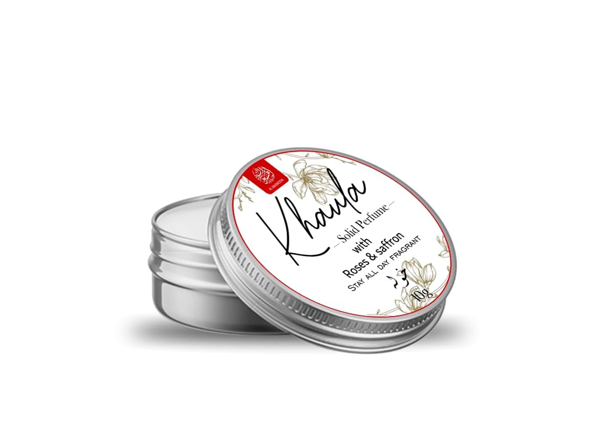 Al Masnoon Khaula Solid Perfume is a luxurious all-day fragrance that blends the rich exotic scents of Arabic rose and saffron. This 10g solid perfume is specially crafted to provide a long-lasting aroma perfect for those who appreciate a touch of elegance and tradition in their daily routine.