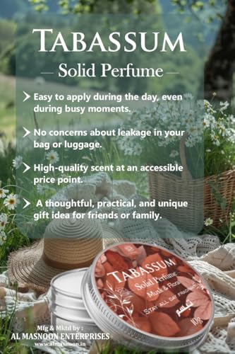 Experience the alluring Al Masnoon Tabassum Solid Perfume in a 10g pack featuring a captivating Floral Musk Fragrance. This versatile solid perfume can be used as a deodorant offering long-lasting freshness while providing a delicate blend of floral and musky notes. Its refreshing scent stays with you all day ensuring you feel confident and fragrant from morning to night. Perfect for daily use the compact design makes it easy to carry and apply while the skin-friendly formula provides a smooth non-greasy finish. Enjoy a refined and elegant fragrance experience with Al Masnoon Tabassum.