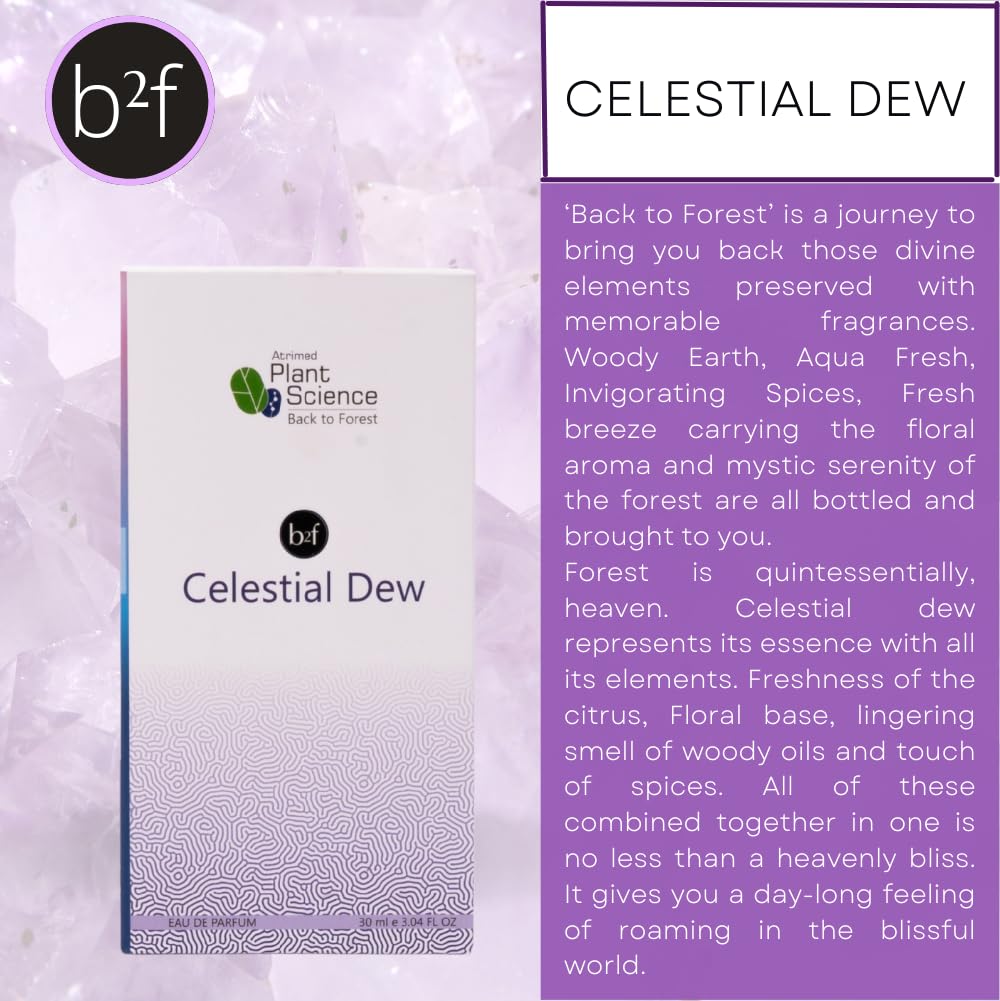 Forest is quintessentially heaven. Celestial Dew represents its essence with all its elements. Freshness of the citrus Floral base lingering smell of woody oils Touch of spices everything in one is no less than a heavenly bliss. It gives you the day-long feeling of roaming in the blissful world.
