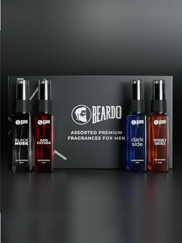 Beardo Perfume for Men - Premium Giftset 4x8ml | Black Musk, Godfather, Dark Side & Whisky Smoke | Eau De Perfume | Strong & Long Lasting Fragrance | Valentines day gift for husband | Gift for boyfriend | Gift for Men