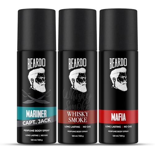 Beardo Whiskey Smoke, Mafia & Mariner Captain Jack Perfume Body Spray Deo For Men (Set Of 3) Long Lasting Smell | Woody Fresh Scent | Deodorant | Fragrance| Christmas gift for men | Gift For Friends | Gift for men