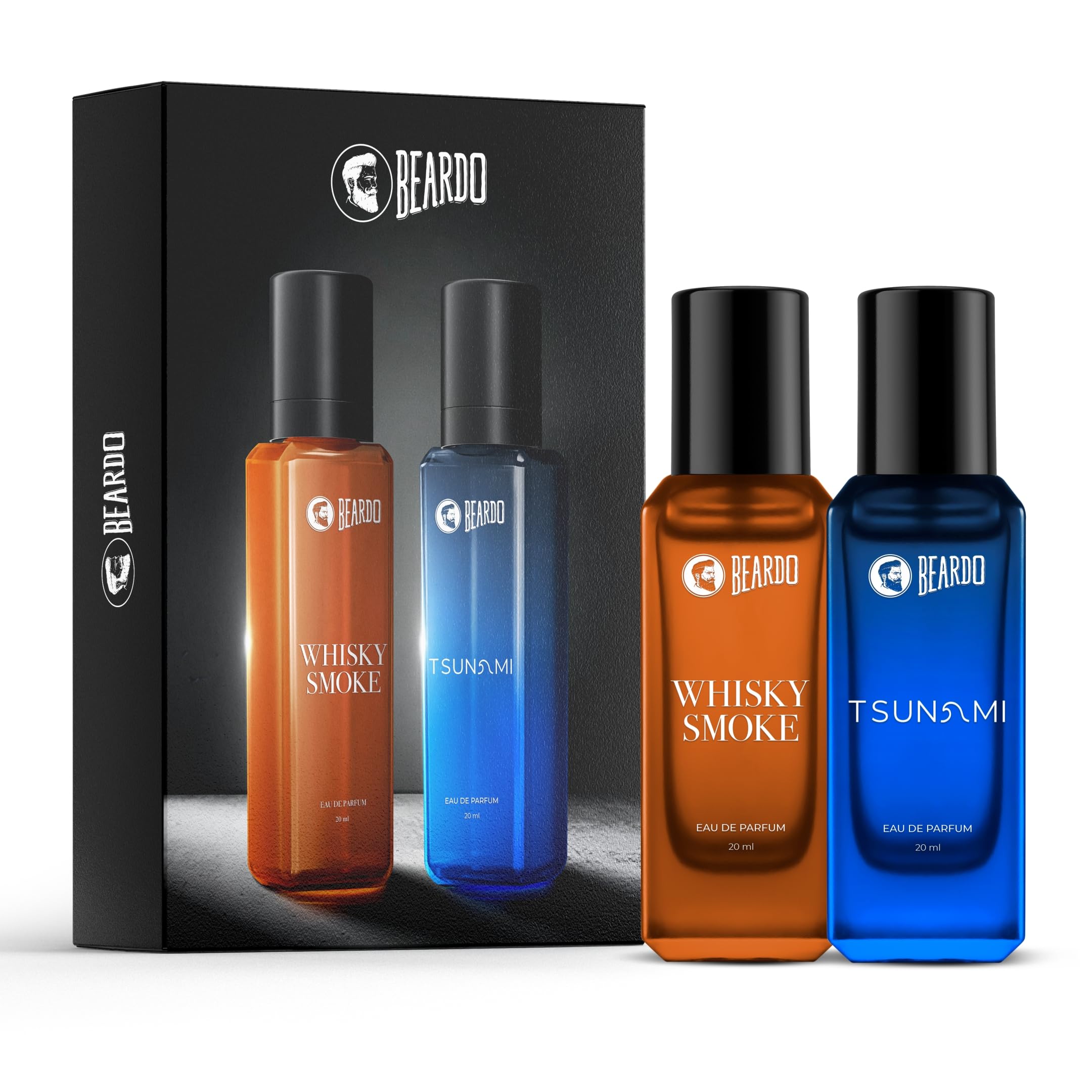 Beardo Whisky Smoke & Tsunami Perfume Combo (20 ml x 2) | Spicy, Woody - Oudh Notes of Whisky Smoke & Fresh, Aquatic Notes of Tsunami | Lasting Mens Perfume | Ideal gift for men | Valentines day gift for husband | Gift for boyfriend | Gift for Men