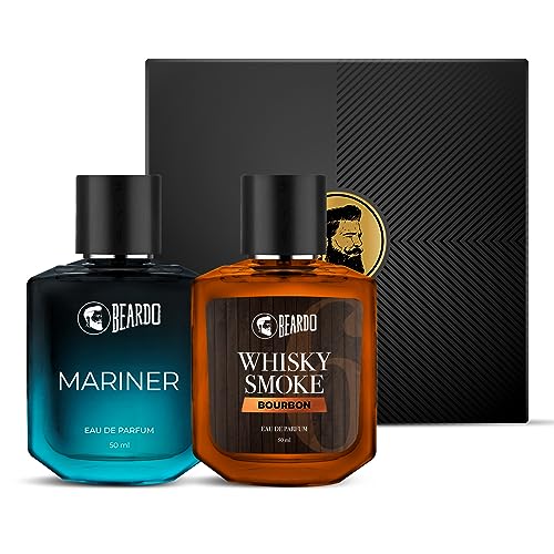 Beardo Whisky Smoke Bourbon Perfume 50ml & Mariner Perfume 50ml Combo | Long Lasting Perfume For Men | Oriental, Woody, Leathery | Fresh, Aqua Notes | Gift Set | Valentines day gift for husband | Gift for boyfriend | Gift for Men