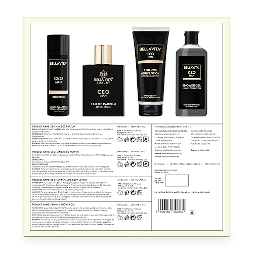 CEO MAN Gift Set is dedicated to the men of style. It embodies masculinity & virility which sets you apart from the crowd. Refreshingly long-lasting with hints of lemon and sugar at the top Lavender at its heart and finally vetiver moss and tonka at the base brings out the perfect fragrance. Enjoy the essence of the CEO MAN Range of products and pamper yourself. This gift set contains: CEO MAN BODY PARFUM: Long-lasting body deo with the scent of CEO! CEO MAN EAU DE PARFUM: Long-lasting and effective perfume for men. CEO MAN BODY WASH: Burst of fragrant energy and hydration in a body wash.