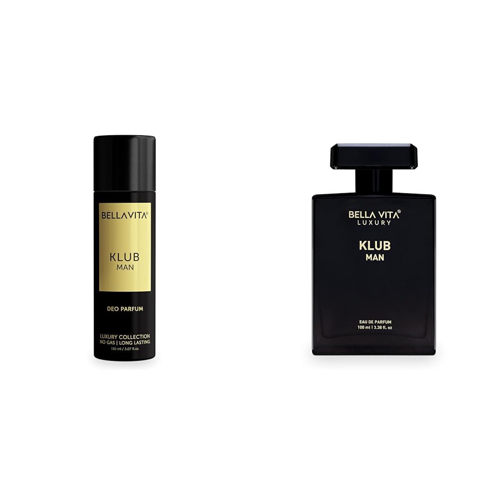 Bella Vita Luxury KLUB Man No Gas Body Deodorant Parfum for Men with Lemon Rose and Vanilla|Musky and Spicy Long Lasting Body Perfume DEO 150 MlBe the life of the party with K.L.U.B Man Deo Parfum a fragrance that inspires you to party to the fullest. Wear it to smell great through the night as you dance into the wee hours of the morning. Top notes of lemon pineapple blackcurrant and apple pack a refreshing punch while heart notes of birch jasmine and rose add freshness. Base notes of musk vanilla and patchouli make this spicy long-lasting fragrance your companion for a great time all the time.Bella Vita Luxury KLUB Man Eau De Parfum Perfume for Men with Lemon Rose and Vanilla|Musky and Spicy Long Lasting Premium EDP Fragrance Scent 100MlBella vita luxury klub man men edp eau de parfum perfume premium best affordable luxurious long lasting scent fragrance attar every day daily party office evening wear musky woody spicy oriental fresh
