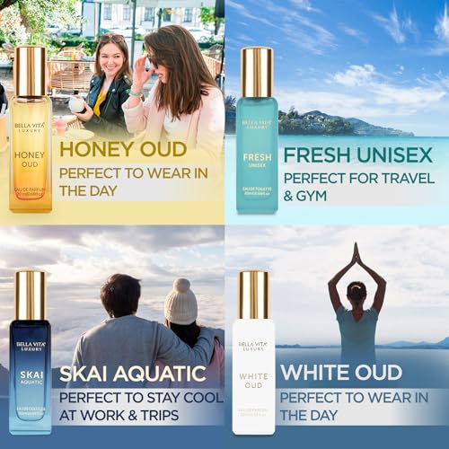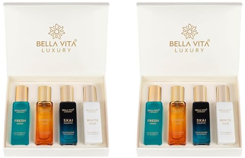 Bella Vita Luxury Unisex Eau De Parfum Gift Set 4 X 20Ml & With Skai, Fresh, Whiteoud, Honey Oud Liquid Perfume|Long Lasting Edp Fragrance Aquatic Scent (Pack Of 2), 80 Millilitres