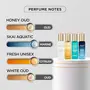 • With its diverse range of scents this perfume gift set takes you on a fragrant journey from the exotic and sweet aroma of white oud to the fresh and aquatic scent of skai aquatic.