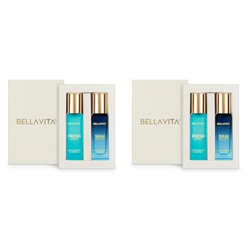 Bella Vita Luxury Skai Aquatic EDC & Fresh EDT Unisex Liquid Perfume Combo With Bergamot, Ylang Ylang, Pink Pepper, Long Lasting Fragrance Scent (Pack Of 4) 20ml Each