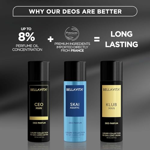• BELLAVITA introduces new body parfum deodorants for Men perfect to wear daily. Smell like your favourite iconic perfumes all day with our range of Body Parfum deodorants.