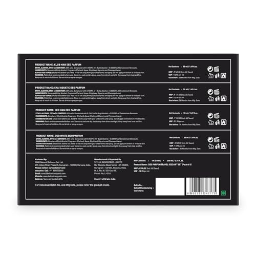 • A set of 4 deos of 50 ml each experience limitless freshness with SKAI Aquatic Deo Parfum. Attract all the attention at a party with KLUB Man Deo Parfum and keep calm with Oud White Deo Parfum. Spray on the scent of success with CEO Man Deo Parfum.