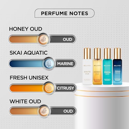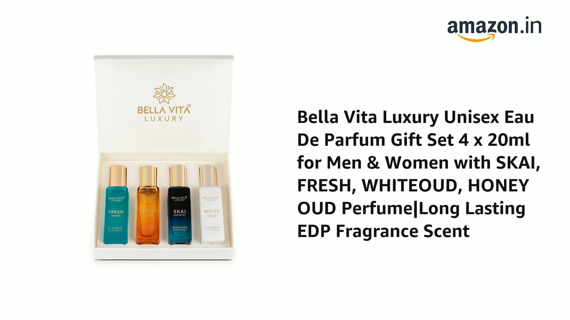 Bella Vita Luxury Long Lasting Unisex Perfume Gift Set | 4x20ml Perfume for Man & Woman | Woody, Aquatic, Sweet, Premium Fragrance Scent | SKAI, FRESH, WHITEOUD, HONEY OUD | Gifts for Men and Women