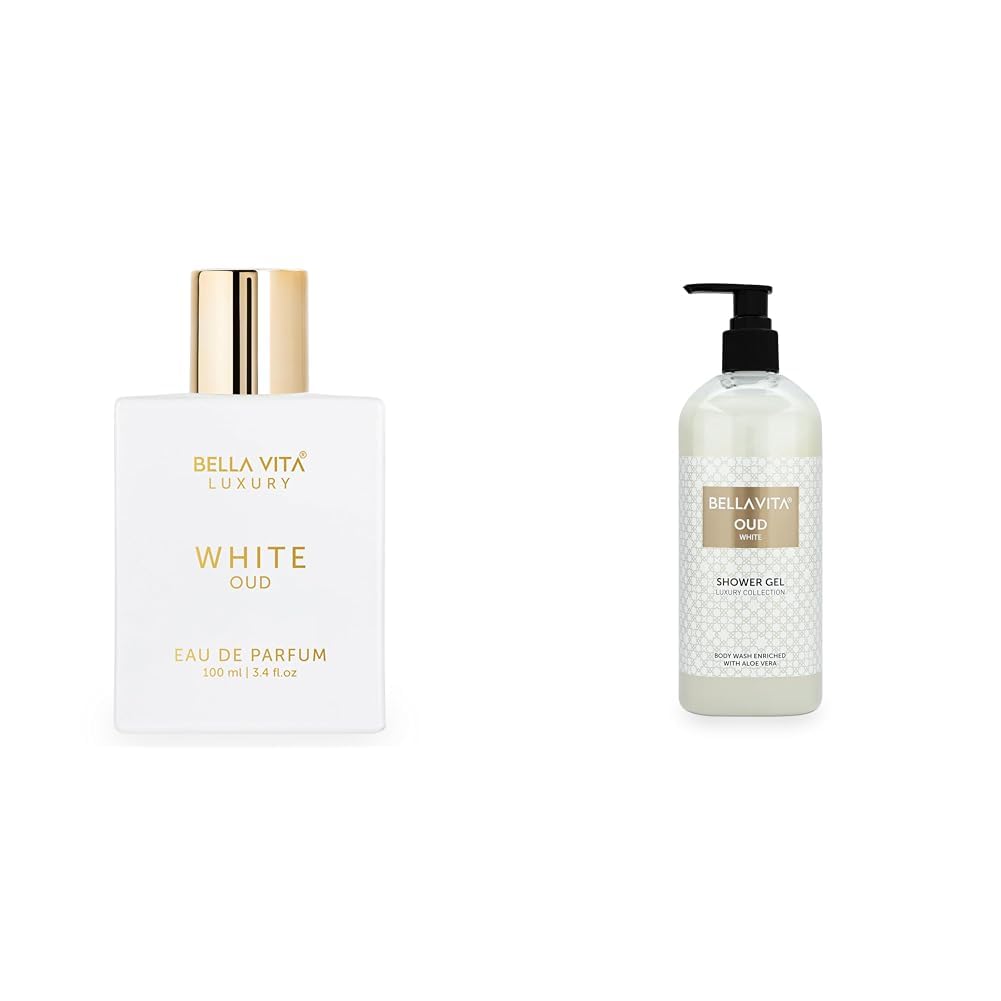 Bella Vita Luxury White Oud EDP Premium Long Lasting Fragrance Perfume 100ml & Shower Gel for Deep Cleansing Hydrating Softer Skin with Aloe Vera 500ml