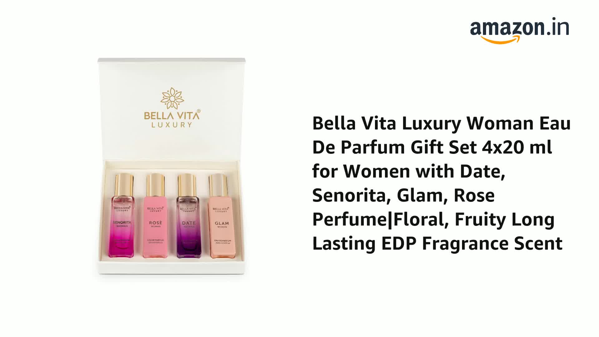Bella Vita Luxury Long Lasting Perfume Gift Set for Woman | 4x20ml | Gifts for Women | Floral, Fruity, Premium Fragrance Scent | Date, Senorita, Glam, Rose