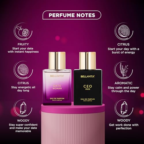 BELLAVITA CEO Man & Date Woman Gift Set | Long Lasting EDP 2x50ml Perfume for Men and Women | with Lemon, Lavender | Floral, Fruity, Woody Long Lasting EDP Fragrance Scent