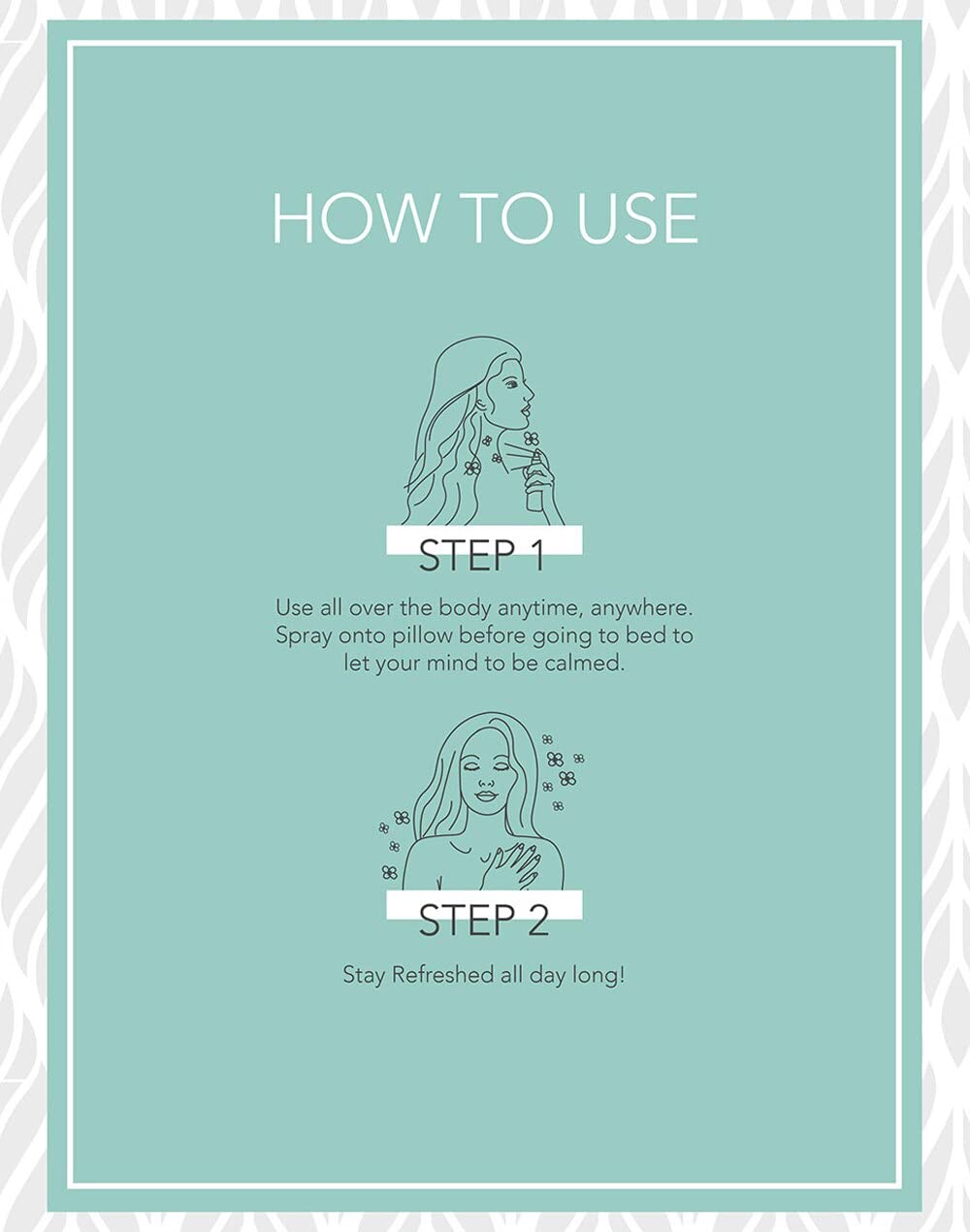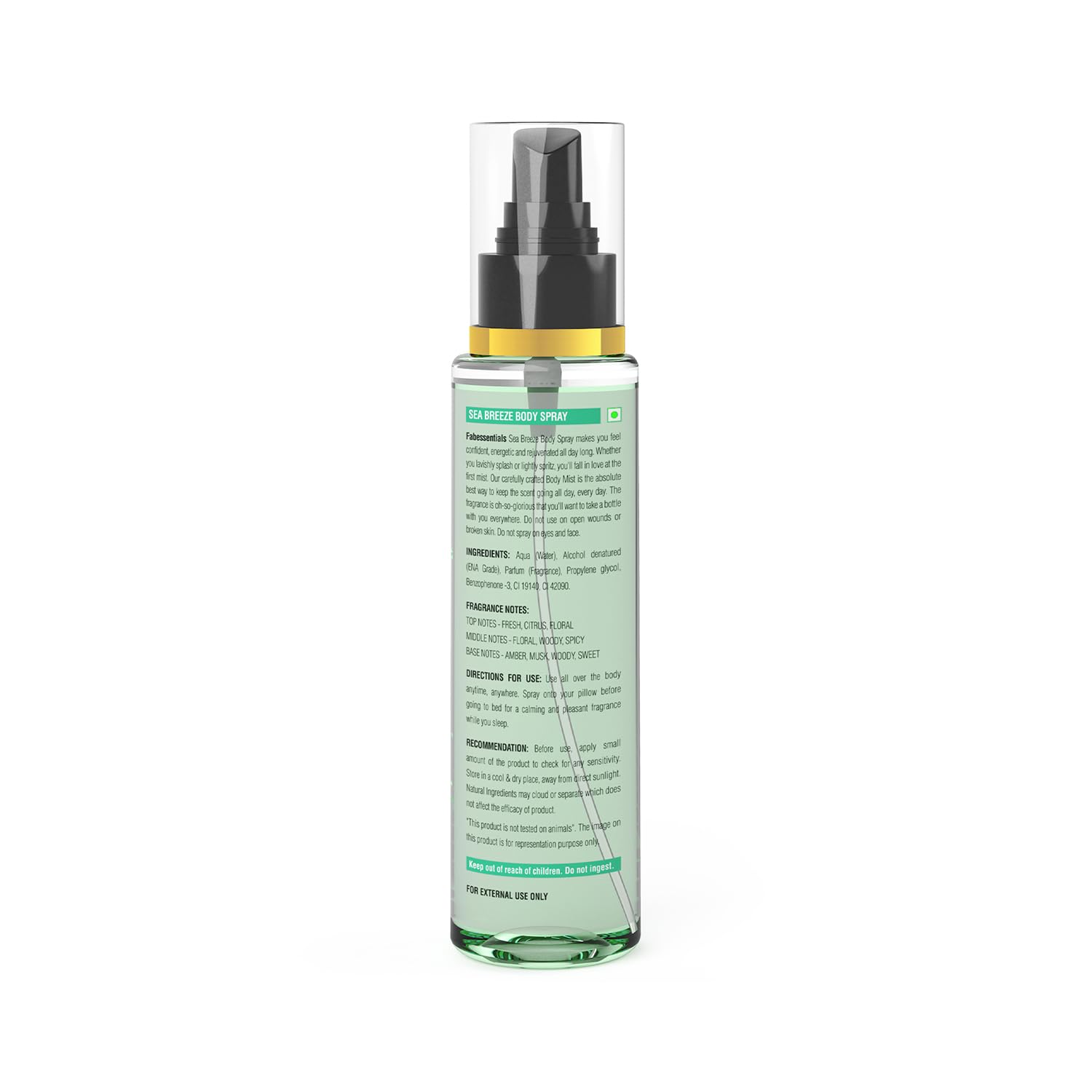fabessentials Sea Breeze Body Spray makes you feel confident energetic and d all day long. Whether you lavishly splash or lightly spritz you'll fall in love at the first mist. Our carefully crafted Body Mist is the absolute best way to keep the scent going all day every day. The fragrance is oh-so-glorious that you'll want to take a bottle with you everywhere. Do not use on open wounds or broken skin. Do not spray on eyes and face.