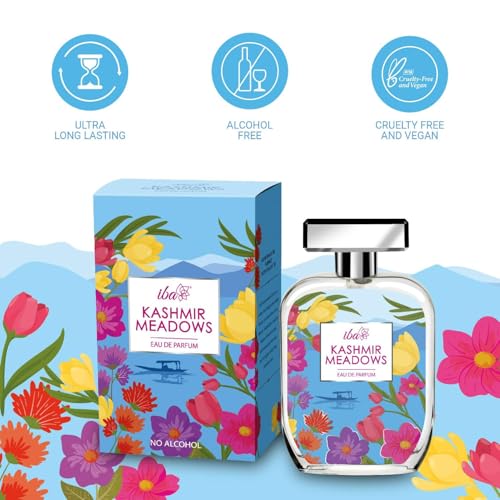 All-day Long Lasting Perfume that You Can Count on! Iba Kashmir Meadows Eau De Parfum is made with the most luxurious blend of fragrances that instantly transport you to paradise. This bold and sensual perfume is designed keeping in mind a modern and vibrant woman. Containing multitude of florals along with an oriental base this perfume lasts all through the day and brings to mind long summer days spent basking in beautiful Kashmiri meadows.Fragrance Type: Bright. Floral. OrientalTop Notes: Grapefruit Green Floral Ocean BreezeMiddle Notes: Lily Pink Orchid RoseBase Notes: Musk Sandalwood PatchouliPETA certified vegan & cruelty freeAlcohol Free and suitable for sensitive skinHalal CertifiedDermatologically Tested