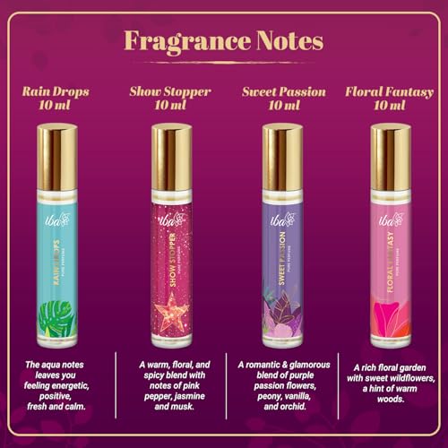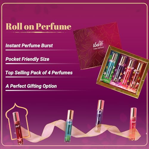 Iba Perfume Gift Set for Women (4 * 10 ml) Luxury Scent Aqua, Fruity, Floral, Woody, Musky & Spicy Fragrance with Long Lasting | Roll on Perfume Set | Alcohol-Free