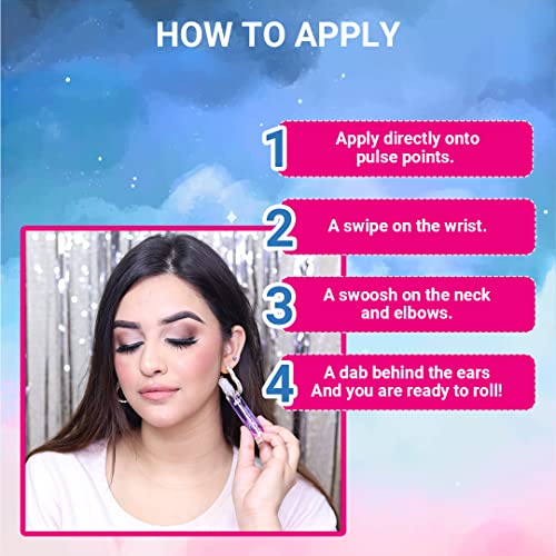 • How to use: Long Lasting Roller ball Perfume. Apply directly onto pulse points. A swipe on the wrist. A swoosh on the neck and elbows. A dab behind the ears. And you are ready to roll!