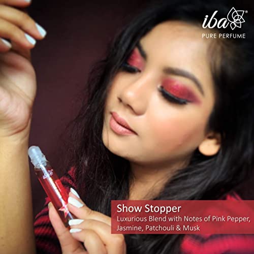 Iba Pure Perfume - Show Stopper 10 ml Premium Long Lasting Floral Musky & Spicy Fragrance for women | Skin Friendly Fresh Perfume for Everyday Fragrance | Alcohol FreeUplifting luxurious and lively!Feel like a âdivaâ with Iba Show Stopper Perfume â a warm floral and spicy blend with notes of pink pepper jasmine patchouli and musk. This easy-to-wear classy and sophisticated fragrance is luxurious and posh making a statement of confidence glamour and elegance each time you put it on!Ideal for special occasions celebrations evening-out and formal wearLong-Lasting Rollerball PerfumeApply directly onto pulse pointsA swipe on the wrist. A swoosh on the neck and elbows. A dab behind the ears. And you are ready to roll!Portable & ideal travel companion; fits easily in your handbagNo alcohol parabens and phthalates