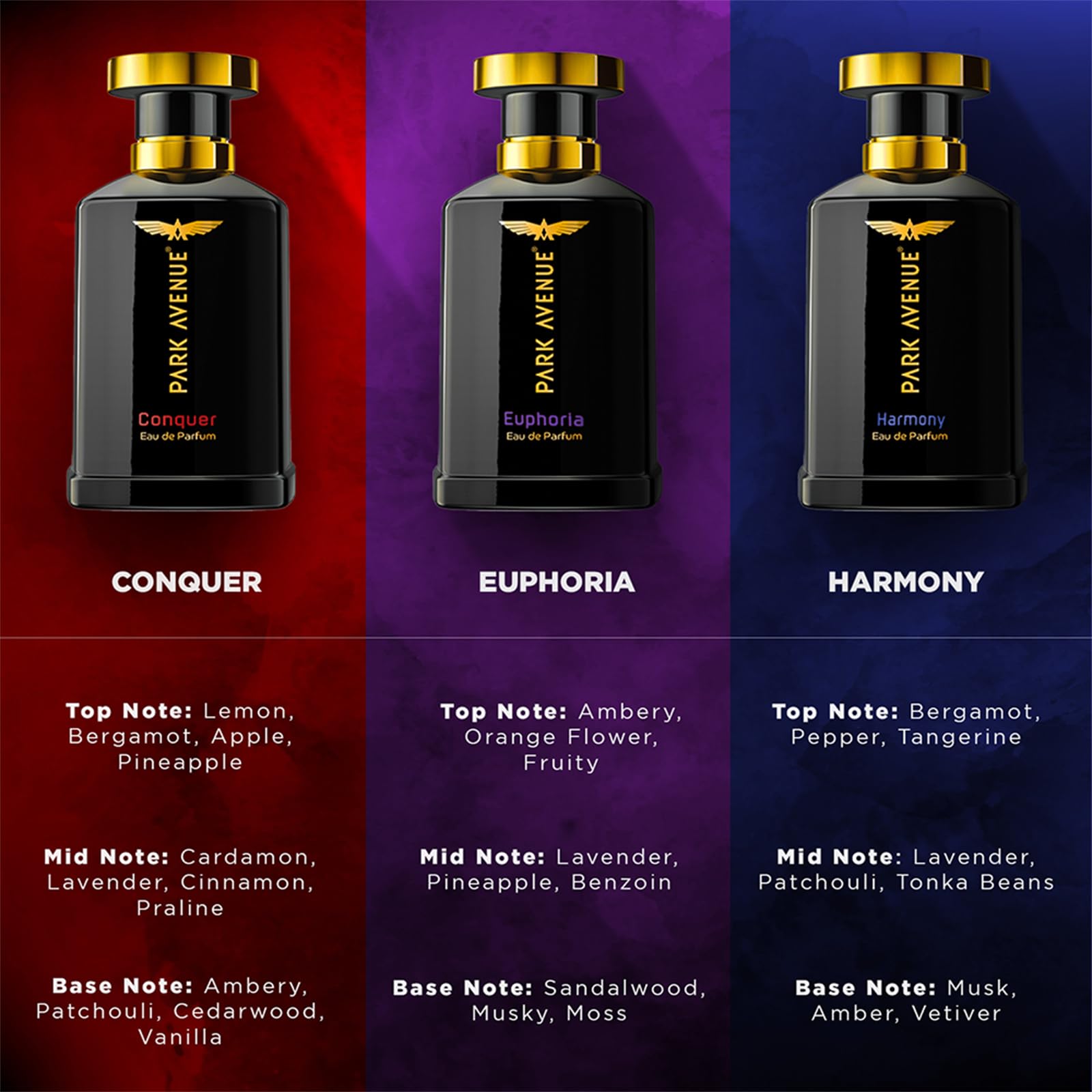 The premium scent of Park Avenue Conquer gives the wearer unique and intense confidence of ruling the room with their mere presence. The exotic mix of vetiver and patchouli makes this masculine fragrance an instant favorite in the crowd. Whats more? It fits perfectly for every occasion and lasts long for an enigma like you.