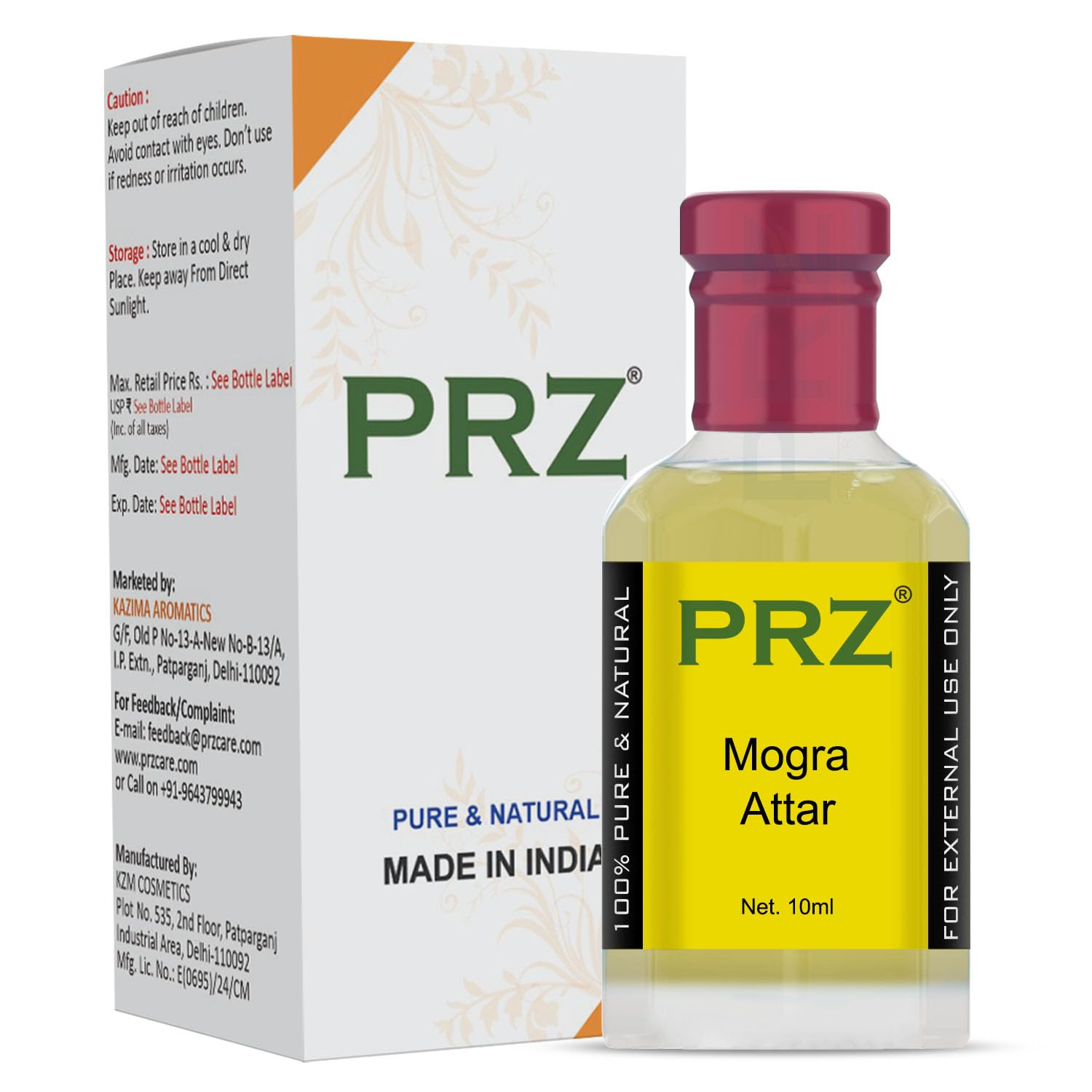 PRZ Mogra Attar Roll-On for Unisex - Pure Natural Perfume (Non-Alcoholic) 10 ml