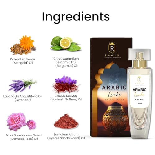 RAWLS Arabic Lamhe Body Mist - Unisex Daily Fragrance with Jasmine, Vanilla & Ginger - Light, Long-Lasting Scent - Paraben-Free - 50ml