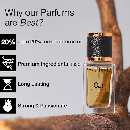 Soulflower Oud: Indulge in opulent notes of lavender jasmine and a rich base of natural fragrances and essential oils. With a 15-20% perfume concentration enjoy long-lasting luxury suitable for all genders.