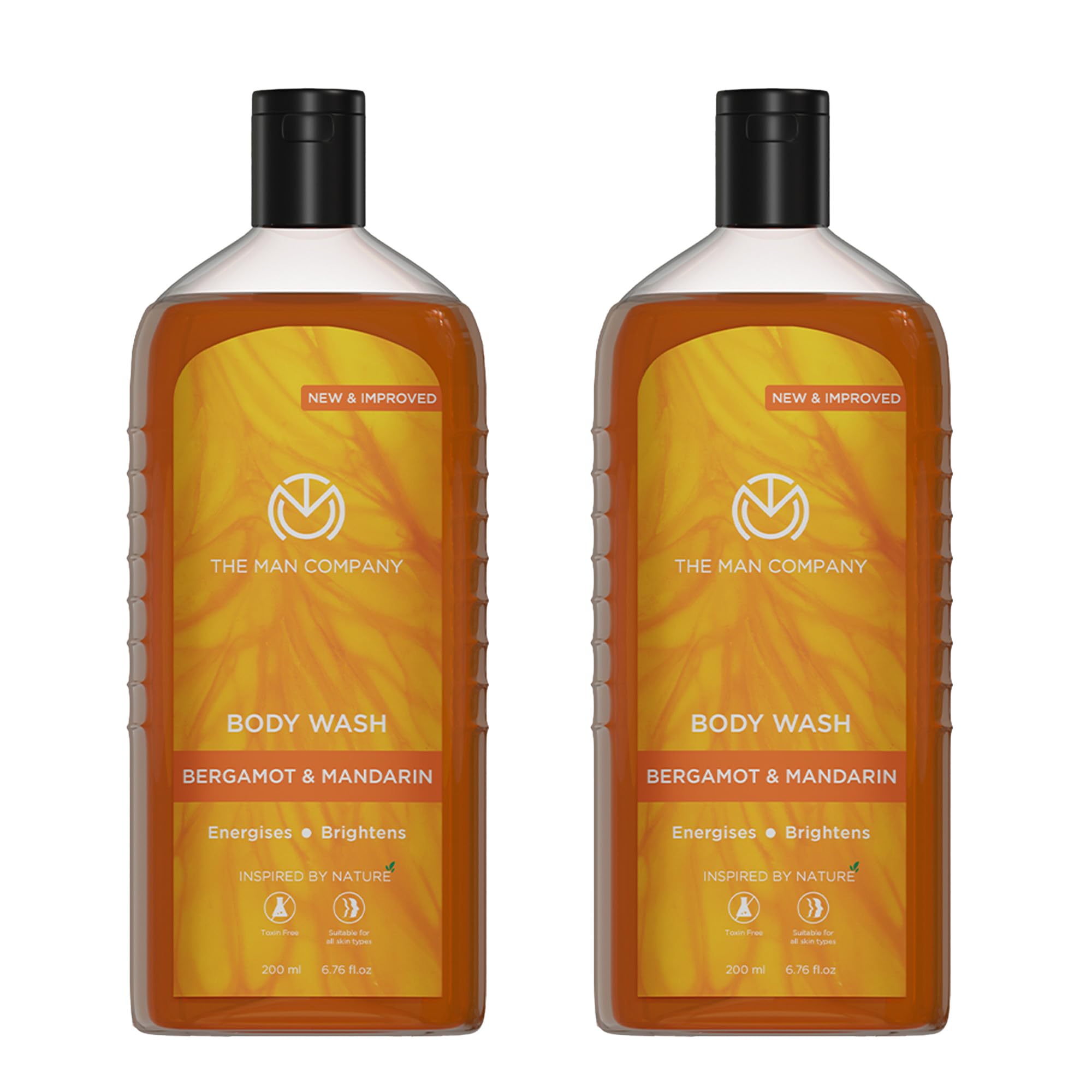 The Man Company Perfumed Body Wash- 200ml (Pack of 2) | Bergamot & Mandarin Body Wash | Shower Gel for Glowing & Bright Skin | Richness of Turmeric Orange Peel Extract | Long-Lasting Fragrance