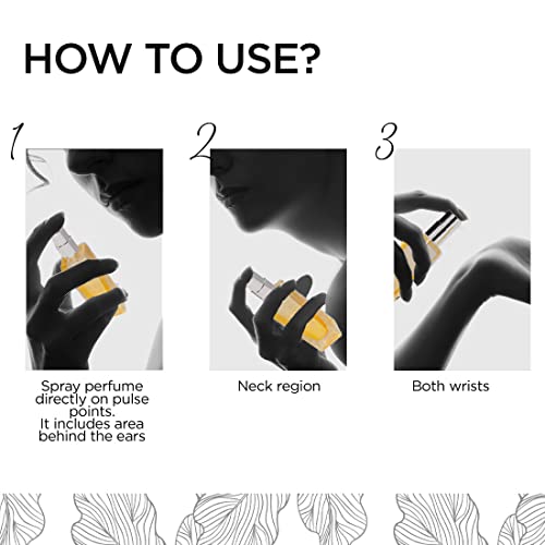 • DIRECTIONS OF USE: Spray directly on pulse points behind your ears neck and both wrists. To make it last longer apply a moisturizer before applying the perfume.