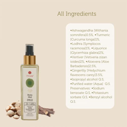 TVAM Body Mist | Ginger Lily Turmeric | For Everyday use | Sulphate-free Silicone-Free - 200ml