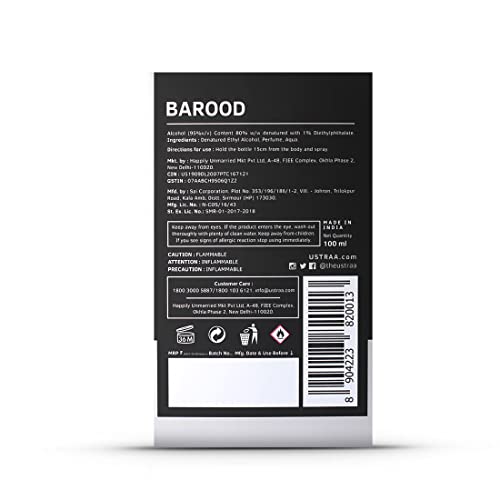 HomeHealth & PersonalAroma ProductsAttar/PerfumesUstraa Barood Eau De Parfume For Men - 100 ml x 2 - Set of 2 Perfumes | with Warm, smokey, sweet and musky scents. Luxury perfume for men | Strong, masculine & mysterious. Long lasting fragrance.