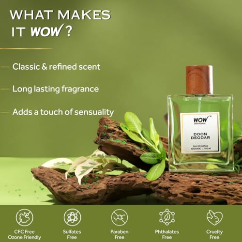 Our EDP perfume belongs to a moment in nature. Our all-day fragrance perfume has dry woody notes that bring to mind the crisp atmosphere of the scenic deodar-covered Doon hills. Our Eau De Parfum (EDP) contains a higher concentration of fragrance that makes it more intense. This makes the WOW Skin Science Eau De Parfum longer lasting than regular perfumes and colognes. The full-bodied fragrance is replete with the aroma of warm spices musk and wood - transporting you to lush green surroundings. It has a vivid scent that creates a sense of warmth. Being unisex perfumes the fragrance notes in the EDPs have been kept universal â neither excessively masculine nor intensely feminine. Our EDP - long-lasting perfume starts with the zesty notes of bergamot and orange that slowly melt into warm and earthy heart notes of nutmeg orris roots and pimento and finally dries down into the rich woody scent of cedarwood and musk. The warm and long-lasting Eau De Parfum is inspired by the fresh scents steeped in nature. It has been crafted with an all-natural and vegan essential oil blend. It contains a higher concentration of fragrance for an intense experience. The perfume lasts up to 12 hours. WOW Skin Science Eau De Parfums are vibrant non-gendered scents â meaning they can be used by anyone who loves to be enveloped in the nature-infused aroma. The fragrance notes have been kept universal â neither excessively masculine nor intensely feminine.