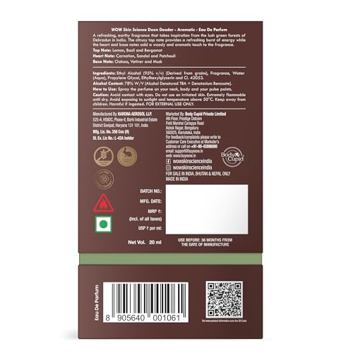 Our EDP perfume belongs to a moment in nature. Our all-day fragrance perfume has dry woody notes that bring to mind the crisp atmosphere of the scenic deodar-covered Doon hills. Our Eau De Parfum (EDP) contains a higher concentration of fragrance that makes it more intense. This makes the WOW Skin Science Eau De Parfum longer lasting than regular perfumes and colognes. The full-bodied fragrance is replete with the aroma of warm spices musk and wood - transporting you to lush green surroundings. It has a vivid scent that creates a sense of warmth. Being unisex perfumes the fragrance notes in the EDPs have been kept universal â neither excessively masculine nor intensely feminine. Our EDP - long-lasting perfume starts with the zesty notes of bergamot and orange that slowly melt into warm and earthy heart notes of nutmeg orris roots and pimento and finally dries down into the rich woody scent of cedarwood and musk. The warm and long-lasting Eau De Parfum is inspired by the fresh scents steeped in nature. It has been crafted with an all-natural and vegan essential oil blend. It contains a higher concentration of fragrance for an intense experience. The perfume lasts up to 12 hours. WOW Skin Science Eau De Parfums are vibrant non-gendered scents â meaning they can be used by anyone who loves to be enveloped in the nature-infused aroma. The fragrance notes have been kept universal â neither excessively masculine nor intensely feminine.