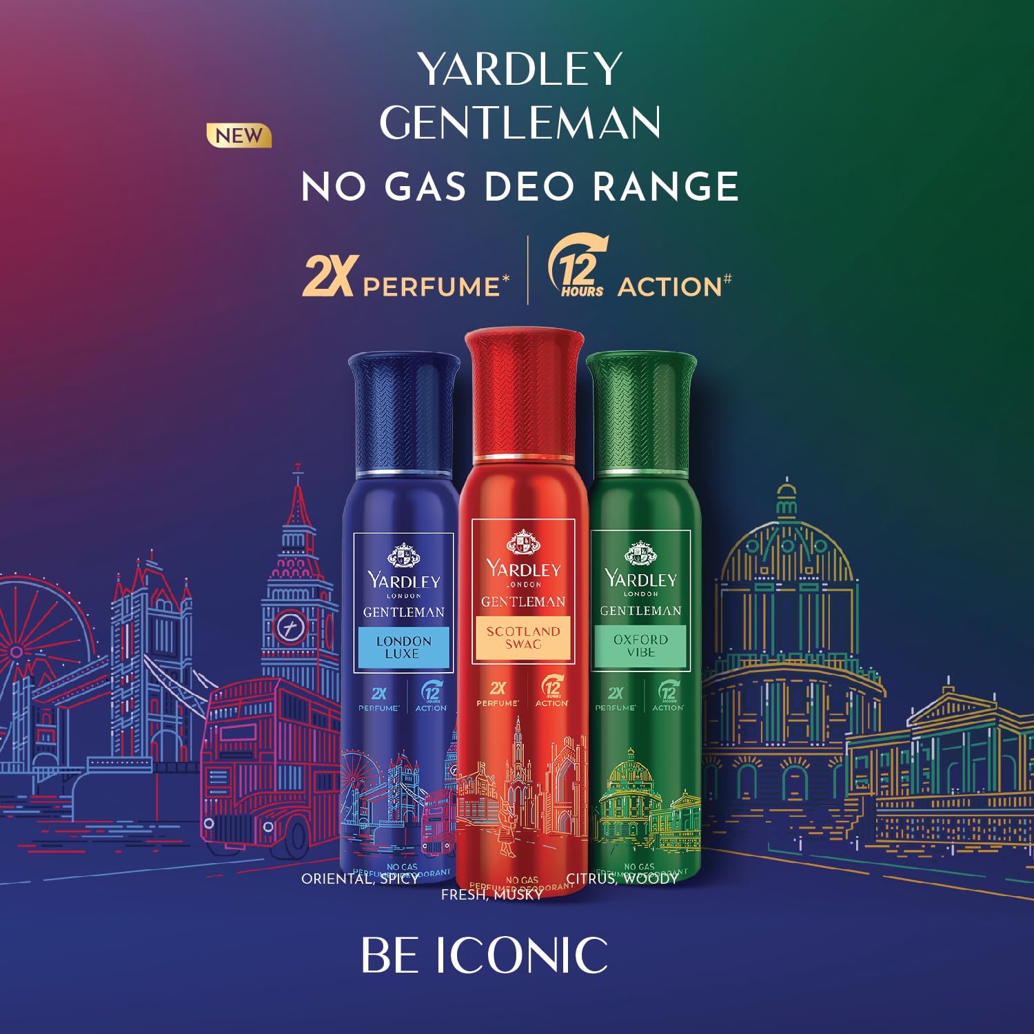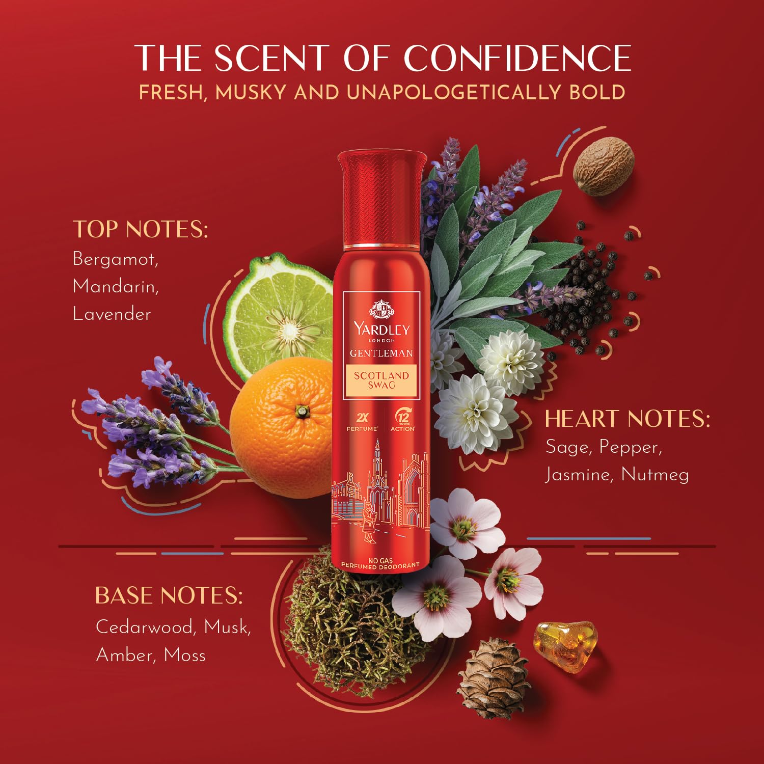Yardley Gentleman Scotland Swag No Gas Perfumed Deodorant | No Gas Deo for Men | 2X Perfume | 12 Hours Action | 120ml