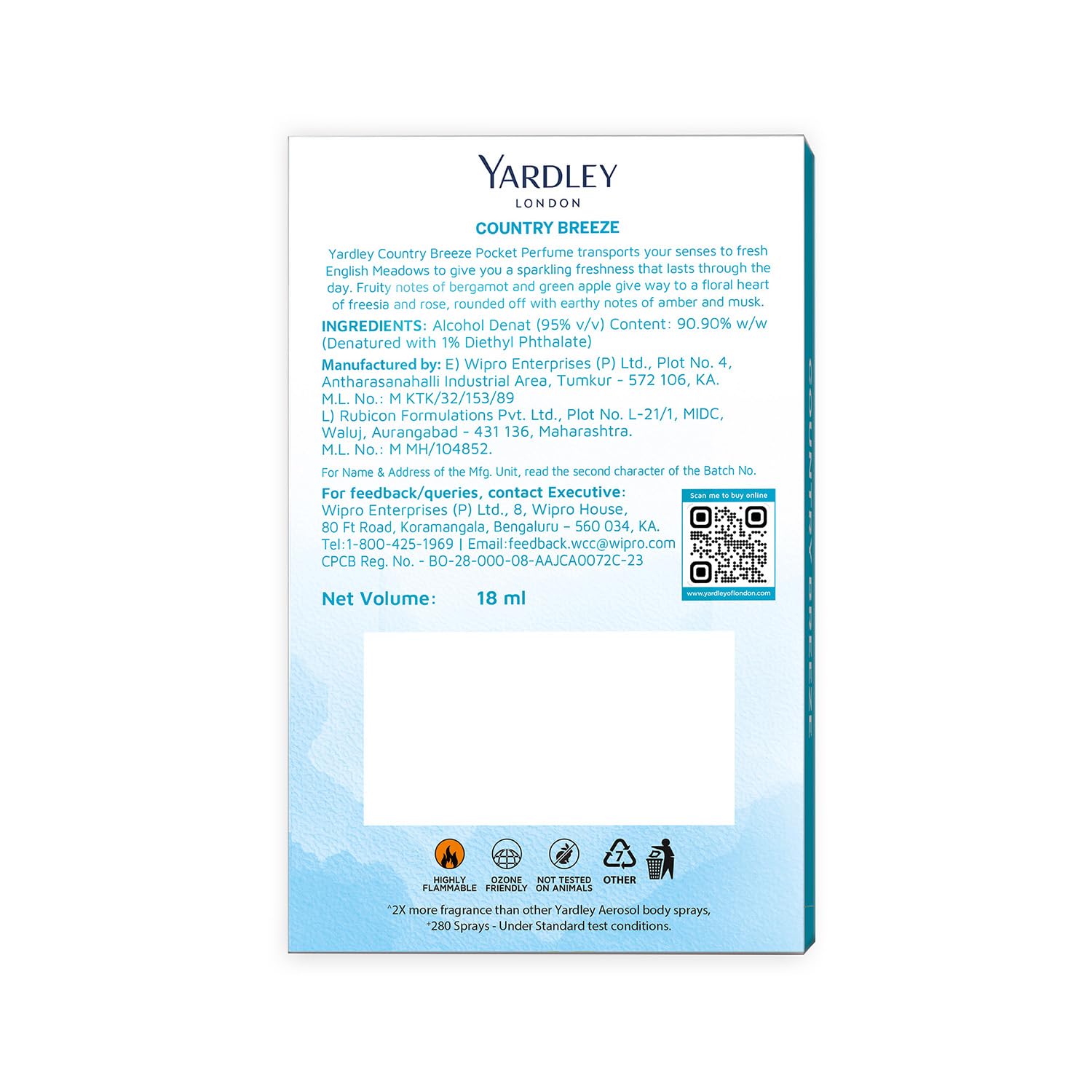 Evoke the enchanting scents of the English countryside with Yardley London's Country Breeze Compact Perfume for Women. This charming fragrance encapsulates the essence of lush untouched meadows where the gentle breeze carries the fragrance of wildflowers.Country Breeze is a sparkling perfume that opens with a lively burst of Mandarin and Bergamot instantly awakening your senses and inviting you to embark on a sensory journey. At its heart lies the refined elegance of Jasmine and Freesia creating a harmonious floral symphony that's both captivating and alluring. Now you can carry the spirit of the countryside with you wherever you go thanks to this convenient on-the-go format from The House of Yardley. It's a delightful invitation to embrace the beauty and tranquillity of the English countryside no matter where you are.With a legacy spanning over 250 years Yardley London is a brand synonymous with Englishness luxury quality and the allure of natural fragrances. Trust in a brand that's celebrated for delivering authentic premium-quality floral fragrances and personal care products. Country Breeze Compact Perfume is more than just a scent; it's an expression of your love for the English countryside capturing the essence of wildflower-filled meadows and the tranquillity of a countryside breeze. Elevate your daily ritual with this exquisite fragrance and feel the enchantment of the countryside envelop you.