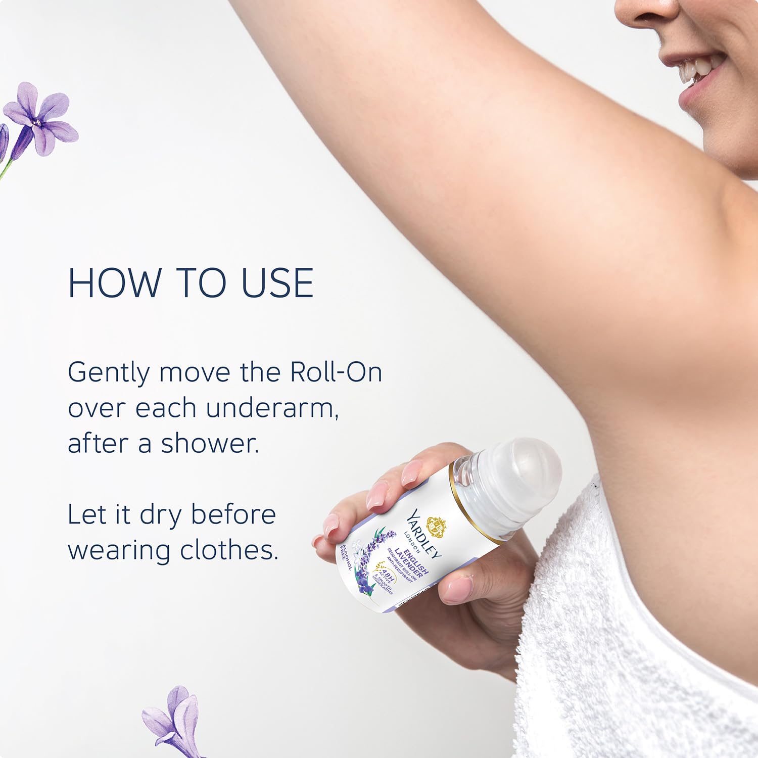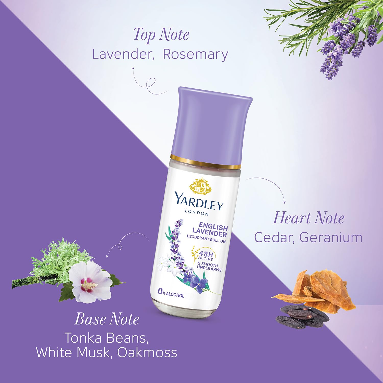 Relaxing floral freshness! 48-hour protection with soothing scent of English lavender skin-brightening licorice and a non-sticky alcohol-free skin-friendly protection.
