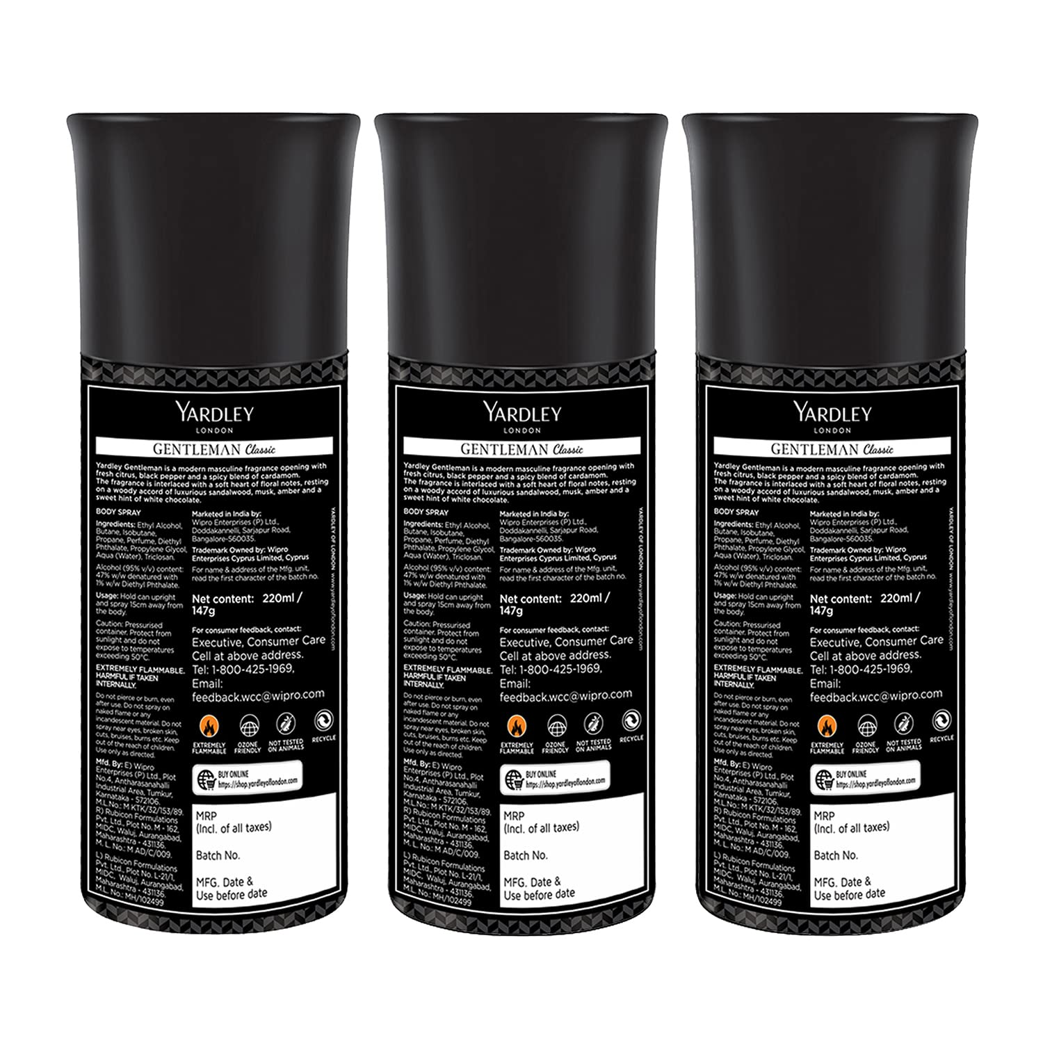 Yardley gentleman classic is a modern masculine fragrance opening with fresh citrus black pepper and a spicy blend of cardamom. The fragrance is interlaced with a soft heart of floral notes resting on a woody accord of luxurious sandalwood musk amber and a sweet hint of white chocolate.