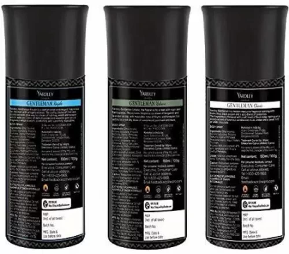 Try the exciting tripack of our gentleman series. Yardley gentleman urbane Yardley gentleman royale and Yardley gentleman classic which are the best companions to fight with odour causing bacteria. This pack has 3 variants of fragrances for man; Yardley gentleman urbane is a fragrance with vigour and flamboyance; Yardley gentleman royale is a sophisticated and elegant fragrance with a regal presence and Yardley gentleman classic is a modern masculine fragrance opening with fresh citrus black pepper and a spicy blend of cardamom.