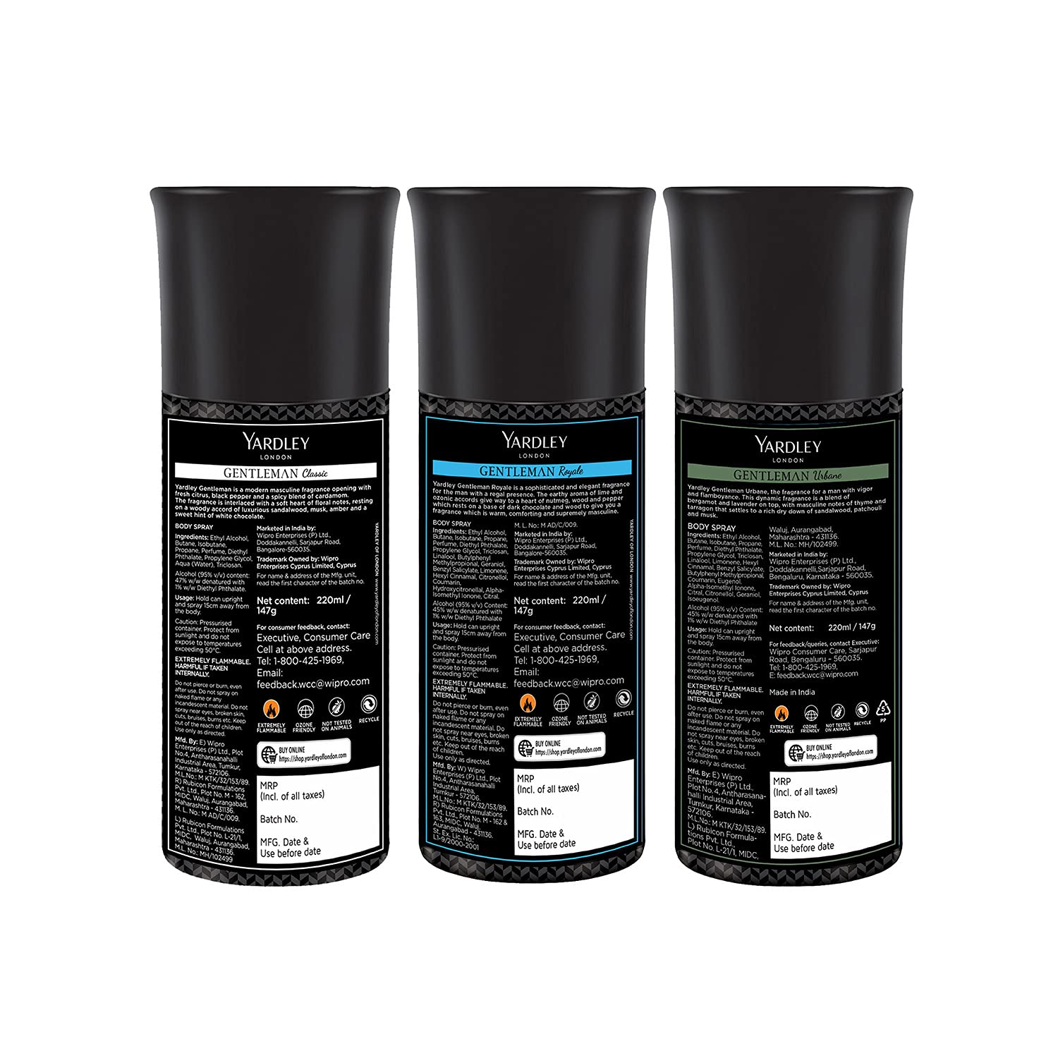 Yardley London Gentleman Range Deo Body Spray Tripack (Classic + Urbane + Royale) for Men 150ml Each - Pack of 3