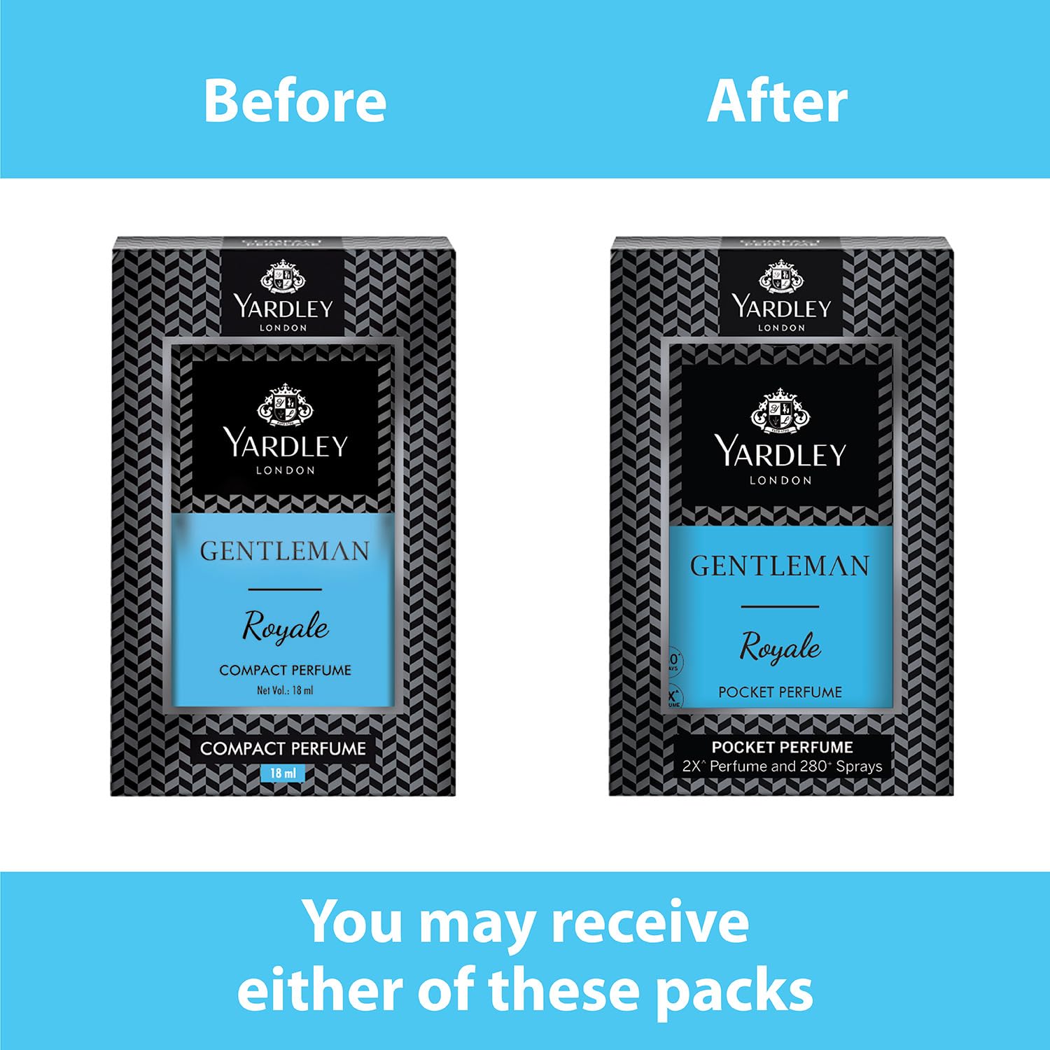 Elevate your daily presence with Yardley Gentleman Royale Compact Perfume - a fragrance of sophistication and elegance. Immerse yourself in a world of rich scents where Lime and Ozonic accords open the gateway to a heart of Nutmeg Wood and Pepper exuding warmth and masculinity. As the fragrance unfolds you'll discover hints of Dark Chocolate and Wood in the base leaving an alluring and comforting aura throughout the day. Designed for the modern man this fragrance offers more perfume than competitors up to 250+ intense sprays ensuring you stay fresh and confident from morning till night. Premium packaging is a testament to its regal essence making it a perfect gift for yourself or a loved one.Yardley a trusted name for years brings you the Gentleman Royale with the perfect balance of Englishness luxury quality and natural fragrance. Step into a realm of timeless elegance and establish your presence with confidence and style. Let the world be captivated by your aura - be the Gentleman Royale.